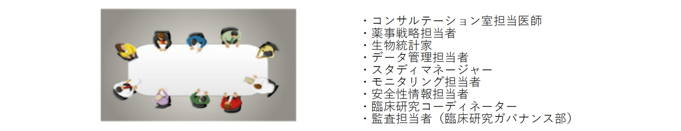 臨床研究の計画段階の早期から、各専門家による研究デザイン・実施体制・必要書類等の確認および助言を行い、個々の研究にとって適正なデザインおよび実施体制構築を図り、臨床研究の円滑な実施を推進します。
